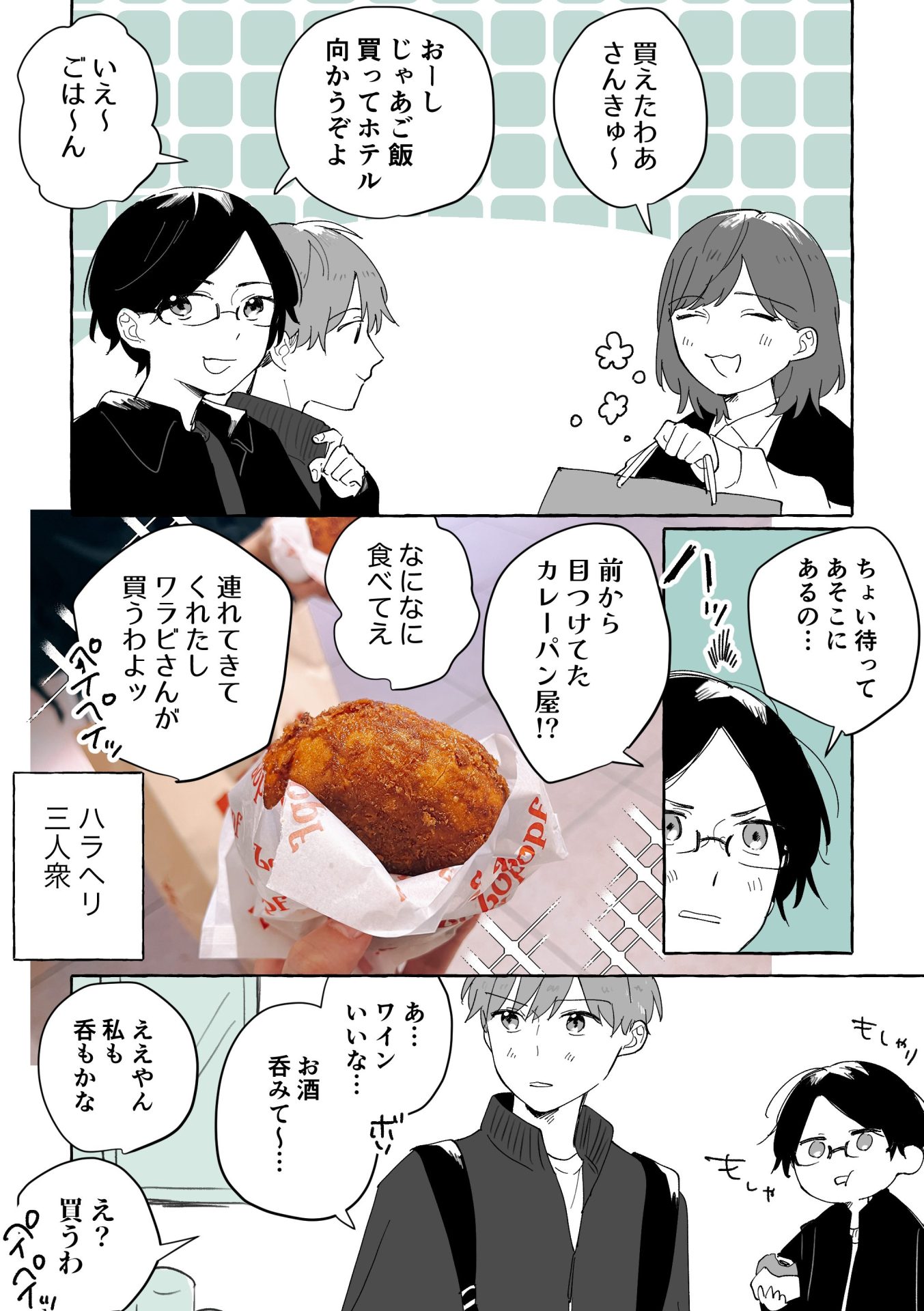 カレーパン食べたり漫画に描いて無いですがミートパイ食べたり